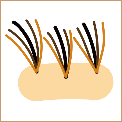 自分の髪の毛1本ごとに、人工の毛を数本づつ結び付けていく増毛法です。