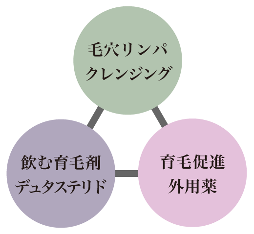 毛穴の汚れを1つ1つ取り除き外用育毛剤を無駄なく経皮と毛穴に浸透させ、リンパ液を活性化して血流を促すのが「毛穴リンパクレンジング」です。施術による快感が緊張した頭皮をリラックスさせ育毛効果を高めます。